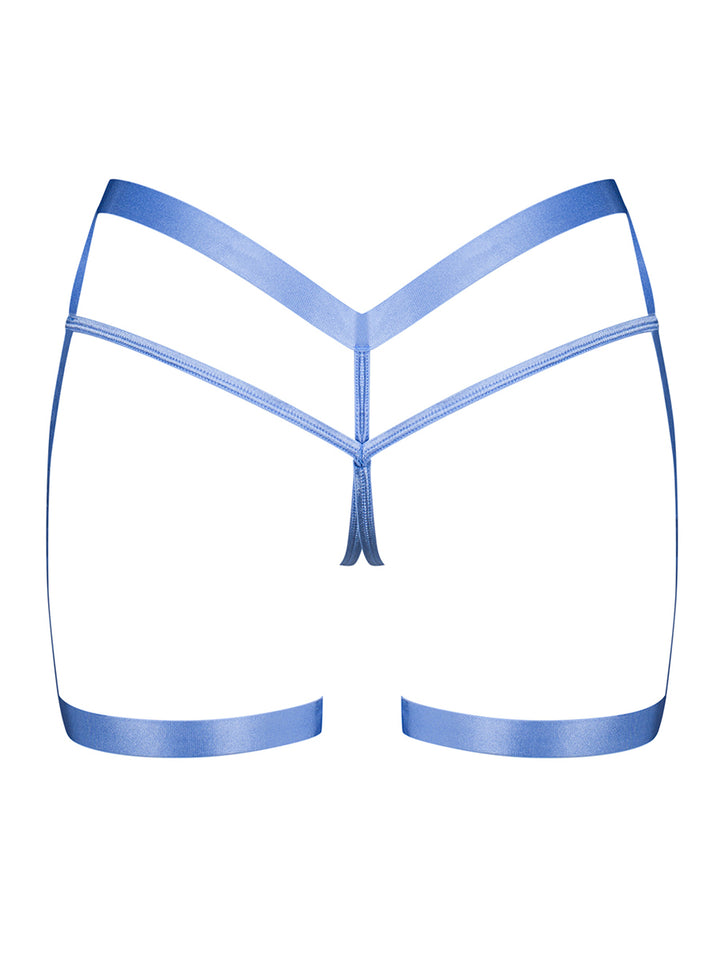 A heavenly clash of the feral and pure. This avant-garde blue harness seamlessly connects garters and an open crotch design, molding and embracing the feminine figure with the precision of the elastic straps. Whether hinting discreetly or boldly teasing, it’s a must-have element in the lingerie arsenal for the modern siren.