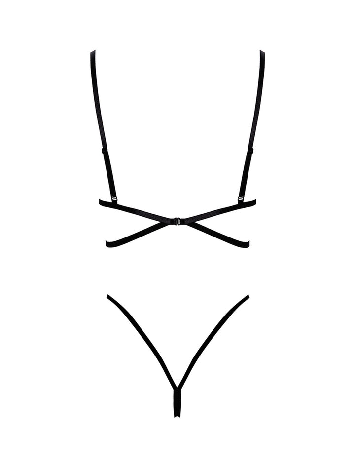• Bra Design: The bra features an intricate lace overlay that provides just the right amount of coverage while remaining provocatively sheer. Adjustable straps allow for a customized fit, and the underband offers additional support without compromising on style. The back of the bra is adorned with minimalist straps that create an eye-catching design, leaving much to the imagination.