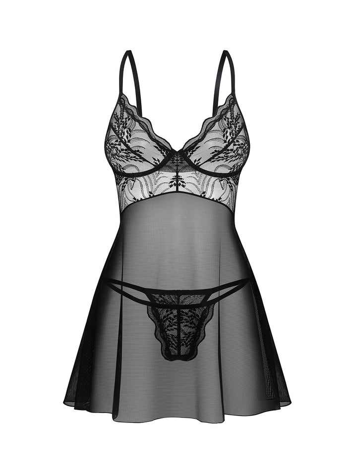 This chic lingerie set from the Perisia collection is a perfect example of double (sexy) trouble! A black babydoll with a classic thong will gently stir your feminine nature and give you self-confidence. Will you let its tasteful combination of minimalist lace and transparent fabric exceed your expectations?