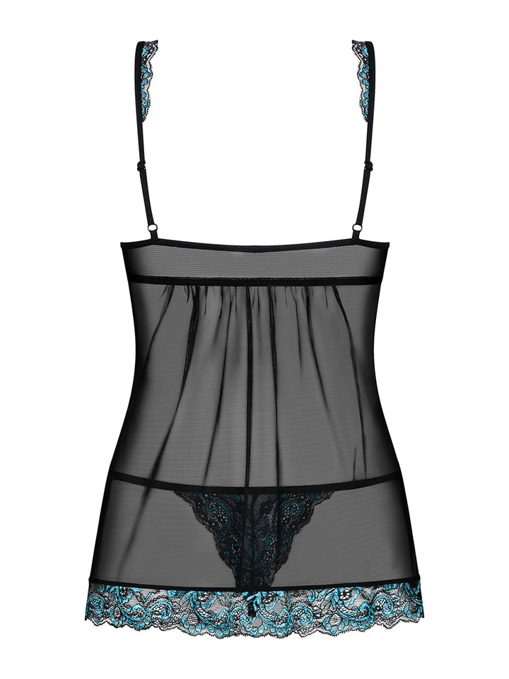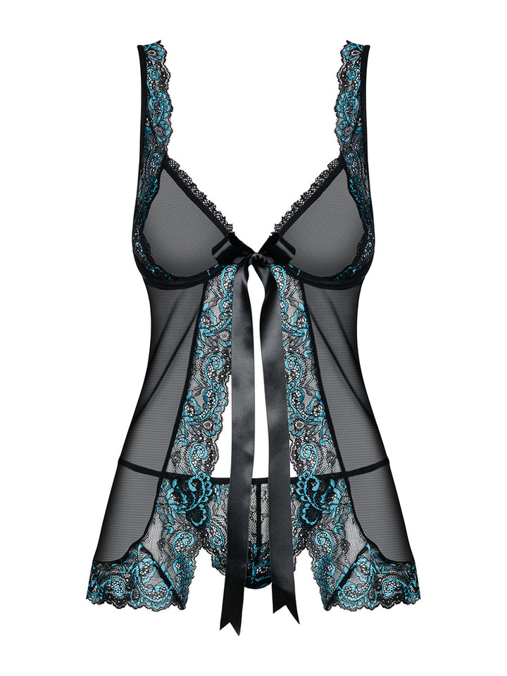 Obsessive Amanta Romantic Babydoll & Thong - Black and Turquoise