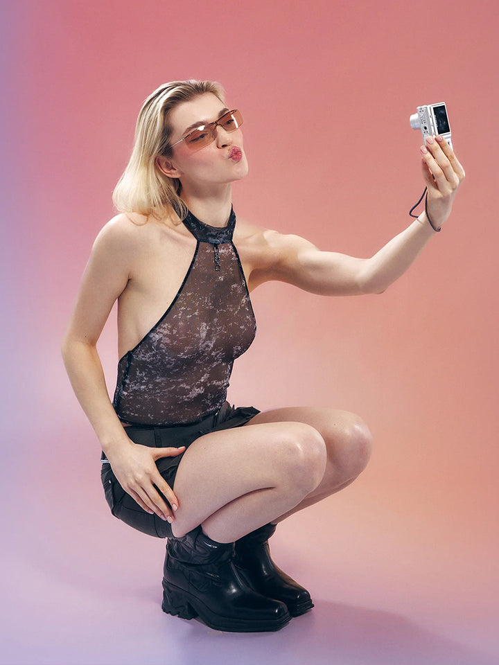 • Made from transparent mesh with a modern pattern