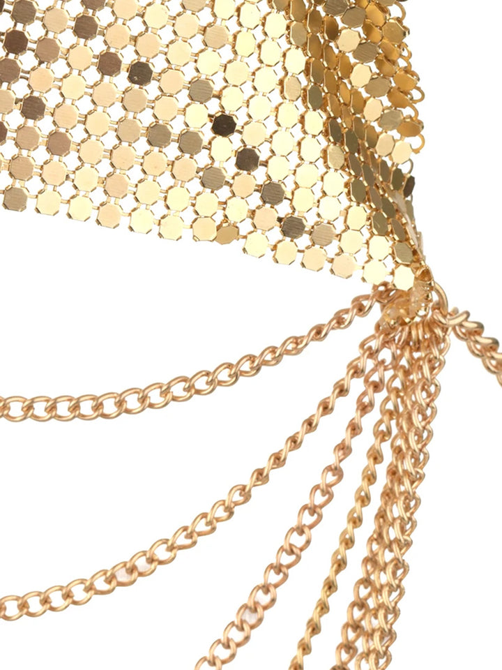 Unleash your inner diva with this dazzling Metallic Mesh Chain Halter Bra. Its shimmering design adds a touch of luxury and edgy elegance, making it a statement piece you won’t want to take off.