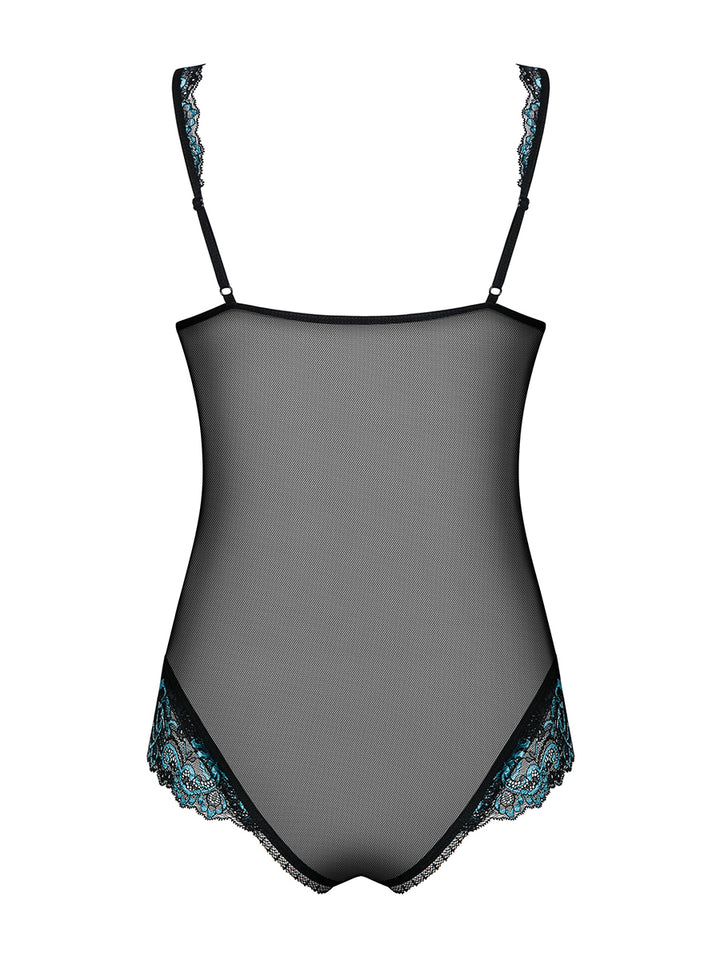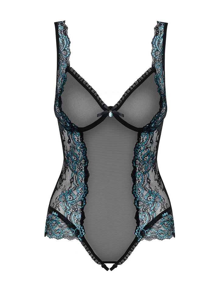 Obsessive Amanta Subtle Crotchless Teddy - Black and Turquoise