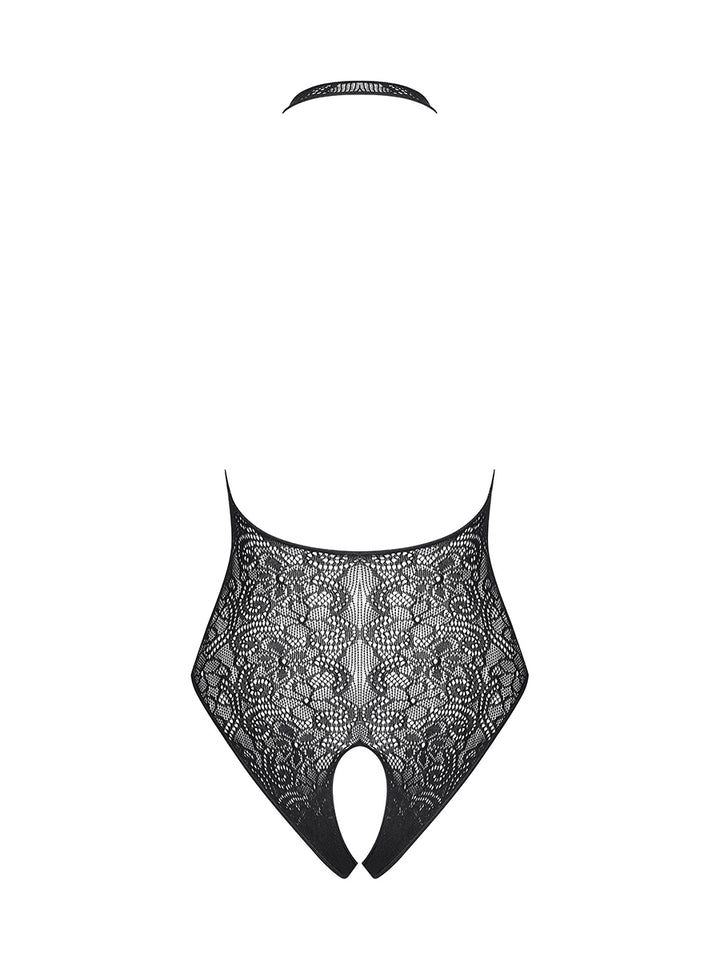 • Black teddy with a delicate, floral pattern