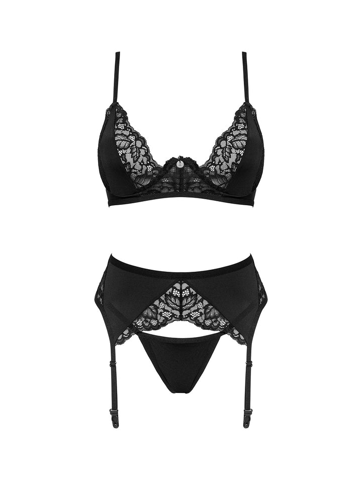 Obsessive Bellastia 3 Pieces Lingerie Set with Garter Belt - Black