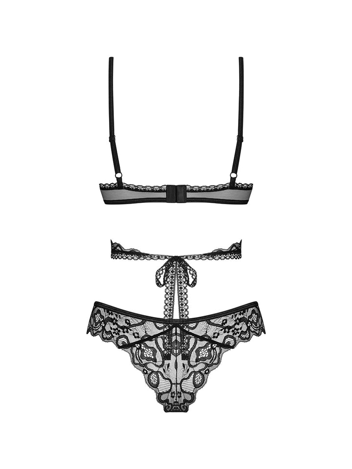 Obsessive Blomentis 2-Pcs Lace Lingerie Set - Black