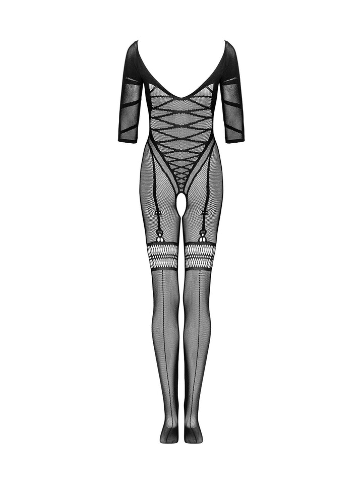 The modern and incredibly tempting design of the G329 bodystocking catches the eye and makes the evening temperature rise in the blink of an eye! Sensual patterns on the front and back, imitating a regulating bond, are an extremely spicy element that will optically slim and emphasize the figure. The sexy cut of the stockings will perfectly decorate the legs and derriere, encouraging you to have even more hot moments in the bedroom.